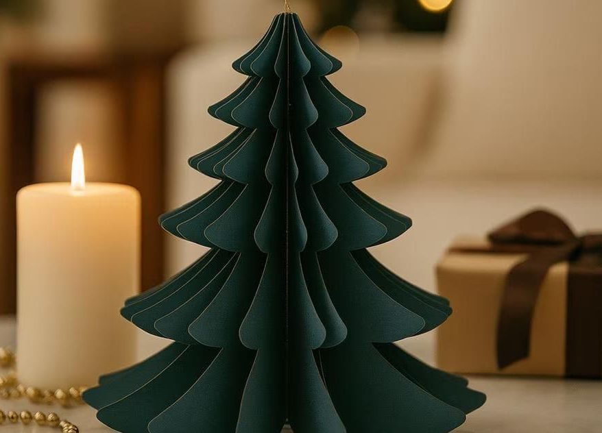 Тут ти навчишся створювати стильні, об’ємні паперові ялинки: ідеальні для декору вікон, столу або подарунків.